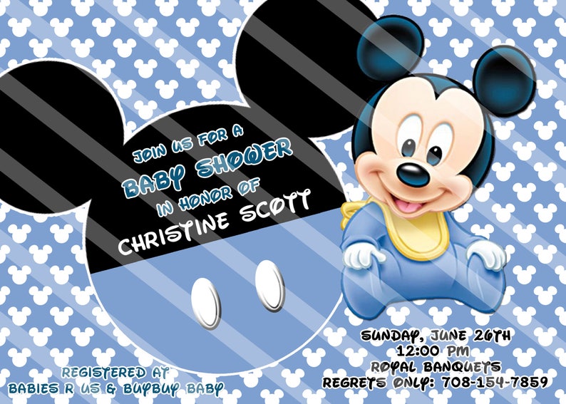 Baby mickey mouse einladungskarten. Baby mickey mouse poster baby mickey birthday party decorations baby mickey baby shower poster theme 1st birthday baby boy shower blue pinkyandblueboystore. Mickey mouse party invitations throw an ear resistibly cute party inspired by your favorite mouse. Buy top selling products like bumkins disney mickey mouse 3 pack superbibs in black and bumkins disney mickey mouse silicone toddler chewtensils in black. Whether planning your little ones birthday a housewarming or a baby shower these personalized mickey mouse invitations are the perfect way to get your celebration started.