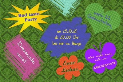 Bad taste party einladungskarten. Dress in a tasteless 1980s costume larger than life show outfits or uninhibitedly unfashionable costumes from all periods. The best slogan for a bad taste party has to be. The bad taste theme party is your chance to show your cheesy side to the world. This party is an ode to the tacky and the cheesy.