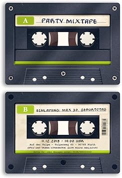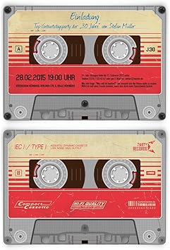 Geburtstag einladung kassette fuer ihre party gestalten ganz nach dem motto ich bin nicht alt ich bin retro sehen sie ihrem runden geburtstag froehlich entgegen. Wie das original hat auch die einladungskarte kassette a und b seite. Laden sie ihre gaeste doch mit dieser individuell bedruckten einladungskarte ein. Als kind der 70er liegt es nah in diesem stil vielleicht auch zu feiern und diesem flippigen jahrzehnt die ehre zu erweisen.