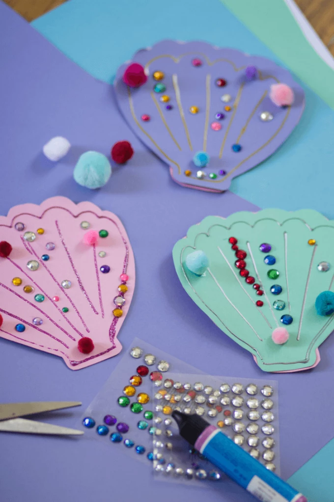 Faltkarte basteln zum geburtstag einladung karte basteln muschel zeichnen karte fuer kindergeburtstag basteln muschel karte basteln mit perlen einla.