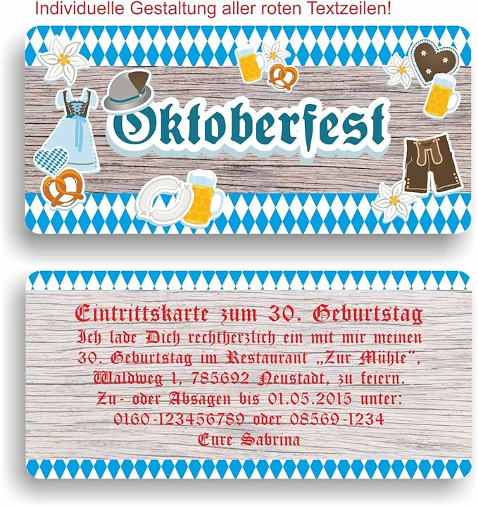 Einladungskarten 50 geburtstag motto oktoberfest. Karten selbst gestalten waehle die gewuenschte kartenzahl und klicke auf den button anpassen gestalte deine karte selbst in unserem editor und bestelle sie wir pruefen deine bestellung. Falls uns fehler auffallen so melden wir uns bei dir. Bayerische einladung zum geburtstag im oktoberfest stil. Geburtstag wie auch fuer solche zum 30 40.