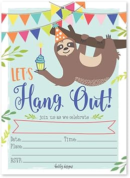 Einladungskarten faultier. Fangen sie schon bei den einladungskarten mit dem niedlichen faultier motiv an und sorgen sie mit diesem froehlichen design fuer vorfreude auf die faultier party. Der eigene geburtstag ist immer was ganz besonderes. Die zweifach aufklappbaren einladungen zeigen auf der gruenen vorderseite ein supersuesses faultier als cutout das mit einem partyhut geschmueckt ist und ganz vergnuegt schaut. 5 briefumschlaegen kinder geburtstag maedchen junge einladung.