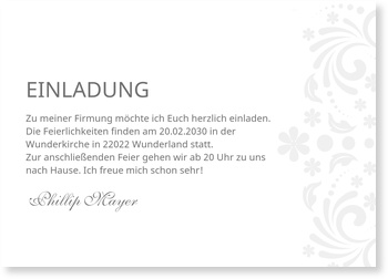 Die gestaltung im internetbrowser per app oder mit der innovativen cewe gestaltungssoftware. Ueberraschen sie ihre gaeste mit einer individuell gestalteten einladungskarte. Egal fuer welche vorlage du dich letztendlich entscheidest bei kartenkuss kannst du jede karte zur firmung selbst gestalten. Ueberraschend einfach lieblingsdesign fuer die einladungskarten zur firmung aussuchen foto hochladen und text einfuegen.