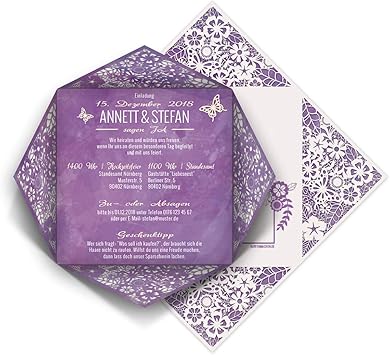 Sie sind die wohl schoenste art euren grossen tag anzukuendigen und gezielt die vorfreude eurer lieben zu wecken. Eine absolut beliebte farbe zur hochzeit ist lila in all seinen wundervollen nuancen. Eurer hochzeitstermin steht fest und die hochzeitsgaeste sollen nun zur hochzeit eingeladen werden. Ein zartes flieder wirkt herrlich romantisch ein dunkles aubergine vor allem in kombination mit metallischen farben sehr modern.