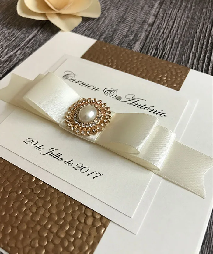 Fuer ihre romantische hochzeit in gold weiss haben wir diese edle hochzeitseinladung gestaltet.