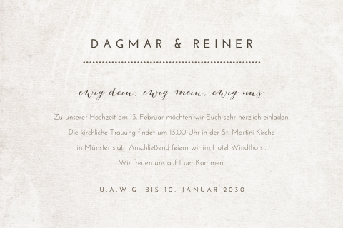 Weitere ideen zu einladungskarten hochzeit einladungen hochzeit. Kirchliche heirat standardpapier unser standardpapier mit einer grammatur von 380g ist ein weisses feinstkarton und besticht durch eine samtig matte optik eine hohe steifigkeit sowie eine geringe anfaelligkeit fuer kratzer. Champagner empfang vor dem kloster 1730 uhr. Schlichte einladungskarten zur hochzeit mit wenigen gestaltungselementen koennen sehr edel wirken.
