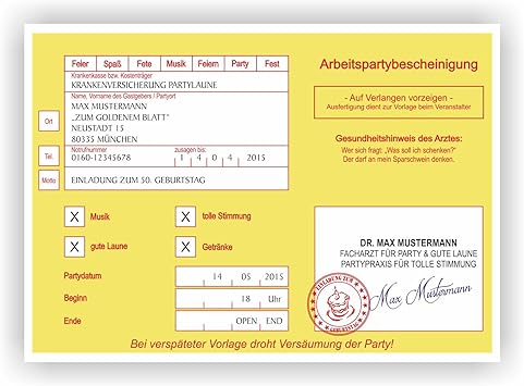 Einladung krankenschein vorlage docx. Einladungskarten 50 geburtstag als krankenschein. Krankenschein party einladungskarte stockfotos und. Stoebern sie in unserer.