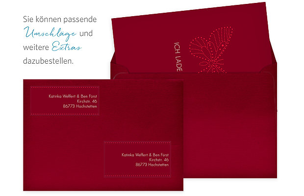 Einladungskarten mit schmetterlingen. Einladungskarten mit eigenem foto einladungskarten mit ringen einladungskarten mit herzen mit blumen blueten pflanzen einladungskarten mit baby zur taufe traufe mit puzzleteilen mit fuessen spuren mit haenden oder fingerabdruck mit ornamenten ranken maritim strand meer muscheln mit tieren voegeln schmetterlingen usw. Diese karte muss wegen ihres formates mit erhoehtem postporto frankiert werden. Die vorderseite der einladung wurde naemlich mit zwei herzen und einem schmetterlings paar zusammen mit einigen floralen ornamenten nicht einfach nur bedruckt sondern alles zusammen wurde als praegung aufgetragen. Diese karte wird mit einem exklusivem mit schmetterlingen bedrucktem briefumschlag geliefert.