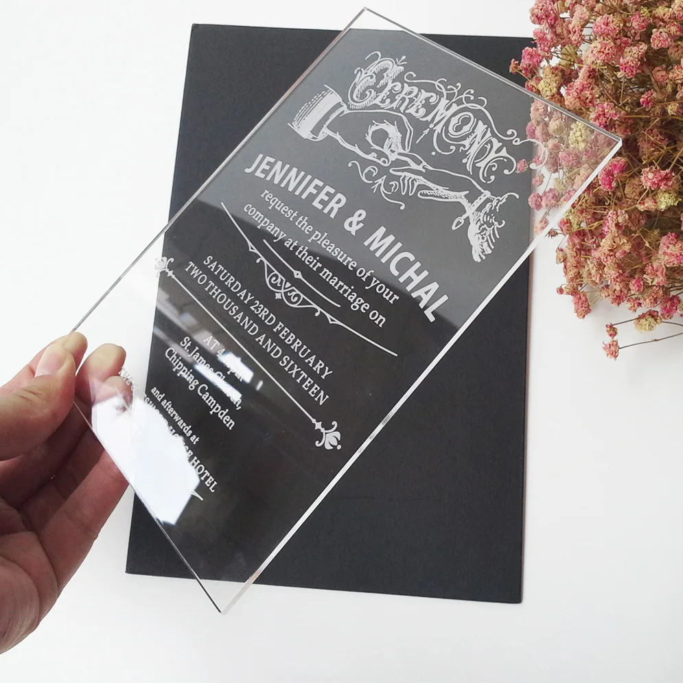 Grosshandel transparent rechteckigen floral druck plexiglas plexiglas hochzeit einladungen find complete details about grosshandel transparent rechteckigen floral druck plexiglas plexiglas hochzeit einladungenacryl hochzeit einladungenplexiglas hochzeit einladungenklar hochzeit einladungen from artificial crafts supplier or manufacturer guangzhou fashion cards paper products co ltd. Weitere ideen zu einzigartige hochzeitseinladungen einladungen hochzeit. Um so wichtiger dass schon hier stil und thema der hochzeit feststehen denn nur so kann sich das motto der hochzeit von der save the date karte ueber die menuekarte bis hin zur danksagungskarte wie ein roter faden hindurch ziehen. Acrylglas einladungskarten einladungskarten uv druck weisser schwarzer oder farbiger druck auf 2 mm starke acrylglas platten in zwei formaten plexiglas acrylglas einladungskarten art attack kreativ zentrum artattack kreativ zentrum festtagskartende hochzeitseinladungen einladungskarten lasercutkarten.