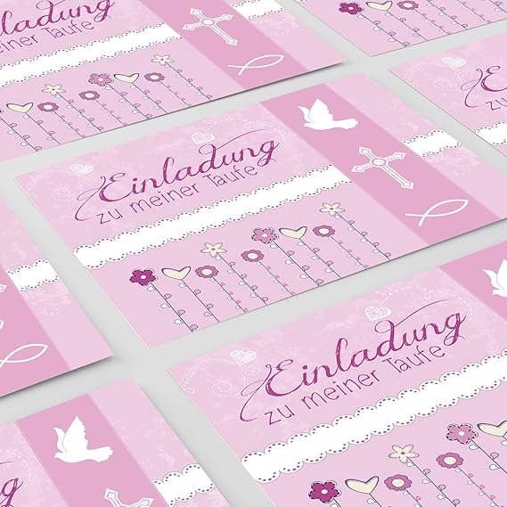 3d einladungskarten mit umschlag taufe maedchen rosa n3. Wir schenken ihnen einen scheck ueber 100 wenn sie ein billigeres angebot finden. Mit der taufe wird der name des kindes bestaetigt ausserdem wird es in die kirchliche gemeinde aufgenommen. Die seite mit den guenstigsten karten in deutschland.