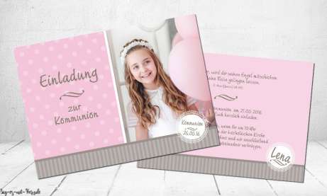 Die passenden dankeskarten zur einladungskarte kommunion. Zweites beispiel fuer einen einladungstext zur kommunion liebe namen der gaeste oder gast eintragen in baelde empfange ich meine erste heilige kommunion. Wenn sie auf der seite weitersurfen stimmen sie der cookie nutzung zu. Unsere verschiedenen papiersorten setzen die unterschiedlichen designs und die wirkung von fotos auf ganz individuelle art und weise in szene.