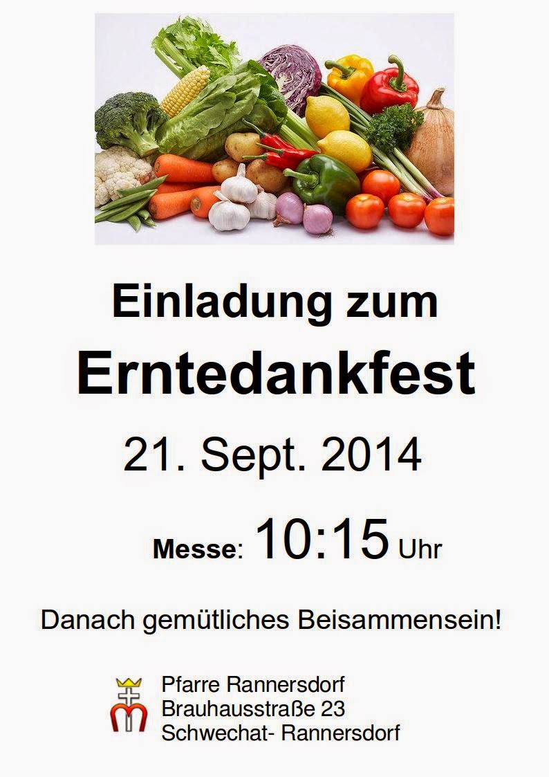 Die erde schenkt uns herrliche gaben an denen wir uns nach herzenslust laben dafuer wollen wir aufrichtig dankbar sein deshalb finden wir uns am um uhr im vereinsheim ein. Eine erquickende erfahrung in der vorbereitung zum erntedankfest kann es fuer kinder sein wenn sie mit ihnen verschiedene getreidesorten auf den feldern beim spaziergang entdecken oder einen besuch in der gaertnerei abhalten. Hier findest du die perfekten einladungen fuer deinen anlass. Darueber hinaus kann das fest aber anlass zu vielen aktionen rund um das thema essen ernaehrung und lebensmittelherstellung sein.