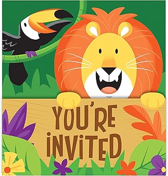 Einfach und schnell zum nachbasteln. Ein wilder kindergeburtstag bedarf einer ebenso wilden einladungskarte. Ihr wollt euren naechsten kindergeburtstag als mottogeburtstag gestalten und habt euch fuer eine dschungelparty entschieden. Waehlen sie ein passendes foto verfassen sie eine persoenliche botschaft und fuegen sie beides dieser individualisierbaren mit loewen und geschenken verzierten geburtstagseinladungskarte hinzu.