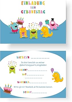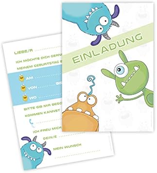 Einladungskarten monster einladung set 4 stk.