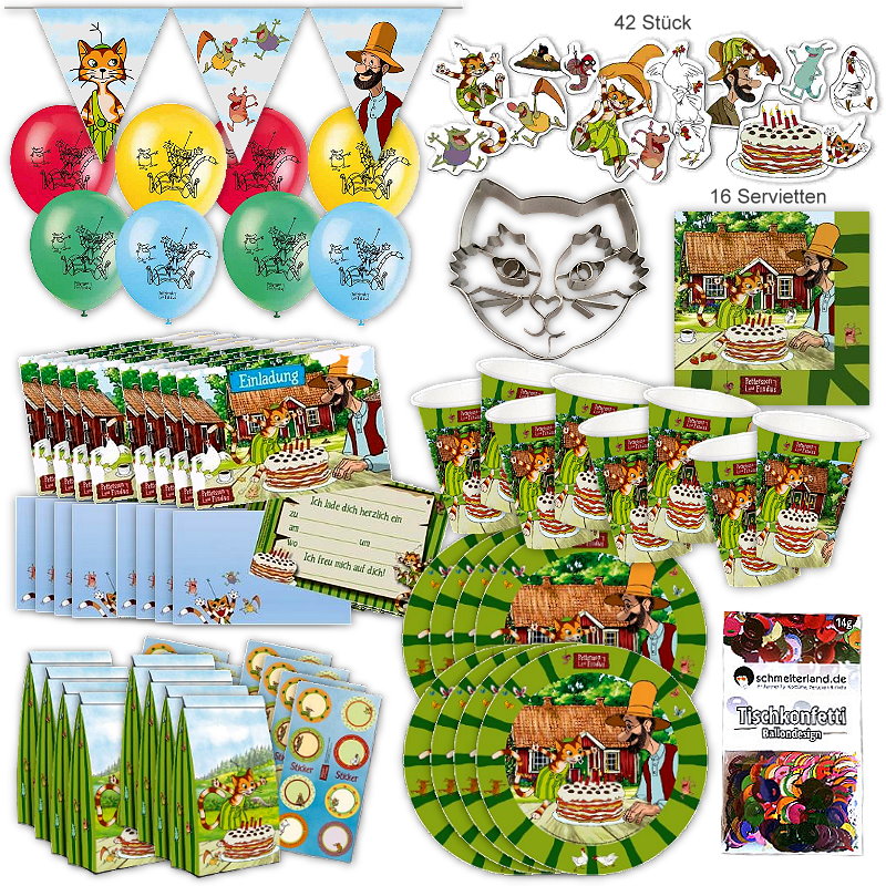 Xxl konfetti pettersson und findus 42 teile von reegen. 8 einladungskarten mit umschlag. Er kann sprechen und am liebsten erschreckt er die huehner vom alten pettersson auf dem kleinen bauernhof inmitten schwedischer natur. Acht kindgerecht illustrierte einladungskarten im postkartenformat fuer den kindergeburtstag mit pettersson und findus.