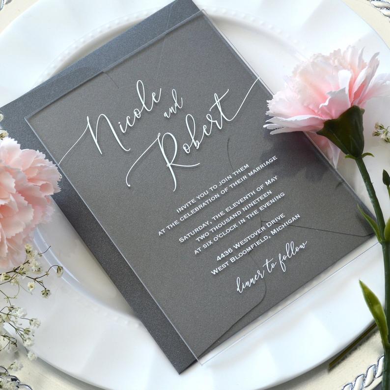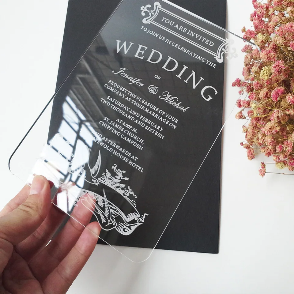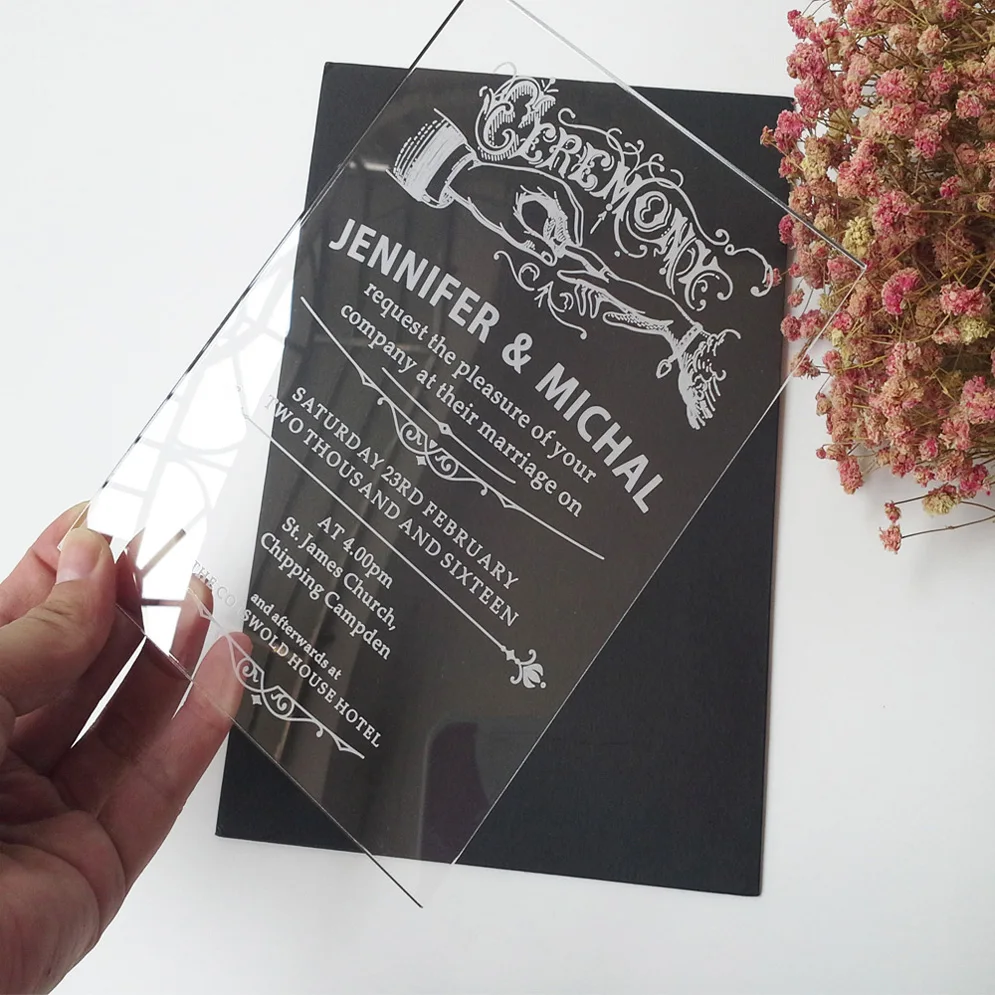Plexiglas einladungskarten. Modern and marvelous this collection is sure to stun your guests with its untraditional departure from your standard paper invite. Weitere ideen zu einzigartige hochzeitseinladungen einladungen hochzeit. Acrylglas einladungskarten einladungskarten uv druck weisser schwarzer oder farbiger druck auf 2 mm starke acrylglas platten in zwei formaten plexiglas acrylglas einladungskarten art attack kreativ zentrum artattack kreativ zentrum festtagskartende hochzeitseinladungen einladungskarten lasercutkarten. Bwedding invitations is pleased to bring you one of our most stunning collections yet acrylic wedding cards.