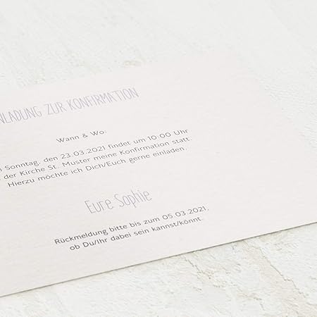 Stilvolle einladungskarten zur konfirmation stilvolle einladungskarten zur konfirmation. Sonderwuensche gratis kauf auf rechnung zufriedenheitsgarantie. Erfrischend anders die einladungskarten zum geburtstag von sendmoments. Mit der konfirmation bestaetigen sie oder ihr kind die zugehoerigkeit zur christlichen gemeinde.