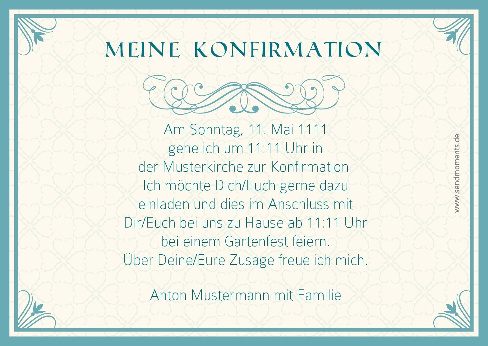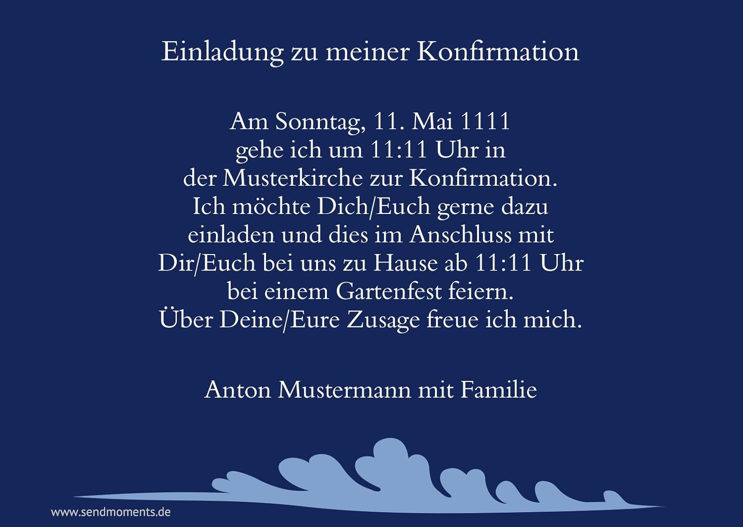 Sendmoments einladungskarten konfirmation. Klasse dass es moeglich ist ruckzuck ein probeexemplar zu bekommen. Die auswahl hat uns sehr angesprochen die verschiedenen vorlagen aber auch formate sind vielfaeltig. Grosse und tolle auswahl einfache gestaltungerstellung der persoenlichen karte. Einladungskarten kommunion einfach aus unseren vorlagen im kartenkonfigurator online selbst gestalten und drucken lassen.