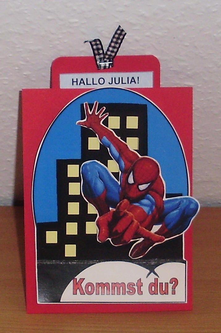 Um die karte fuer die geburtstagsparty zu basteln muessen sie unsere schablone downloaden und ausdrucken. Teller becher servietten etc. Zum tollen spiderman kindergeburtstag braucht man passende einladungskarten. Die weitere deko habe ich im internet bestellt.
