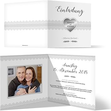 Schau auf jeden fall auch zuhause nach ob du noch ein altes foto von dem paar hast das du auf die karte kleben oder beilegen kannst. Wie schon bei der eigentlichen trauung und der zugehoerigen feier der gruenen hochzeit laedt man hierzu mit schoenen einladungskarten ein. Wie bereits erwaehnt ist es eine wundervolle idee einladungskarten zur silberhochzeit mit einem weisen und sinnigen spruch oder einem ausdrucksstarken gedicht jeweils versehen mit grosser bedeutungskraft beginnen zu lassen. Einladungstexte zur silberhochzeit text fuer einladung zur silberhochzeit.